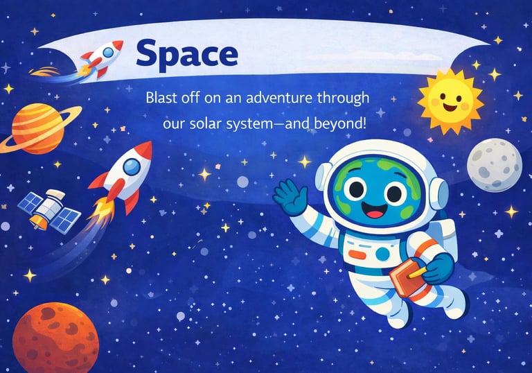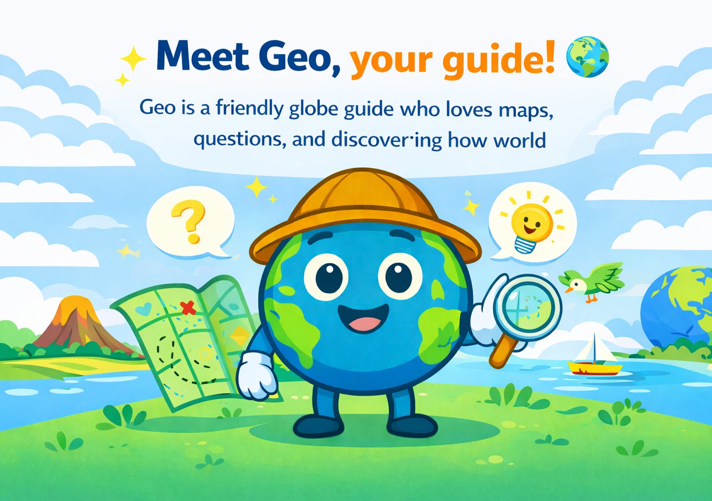 Geo is a friendly globe who leads kids on calm, curious journeys through earth and space science.